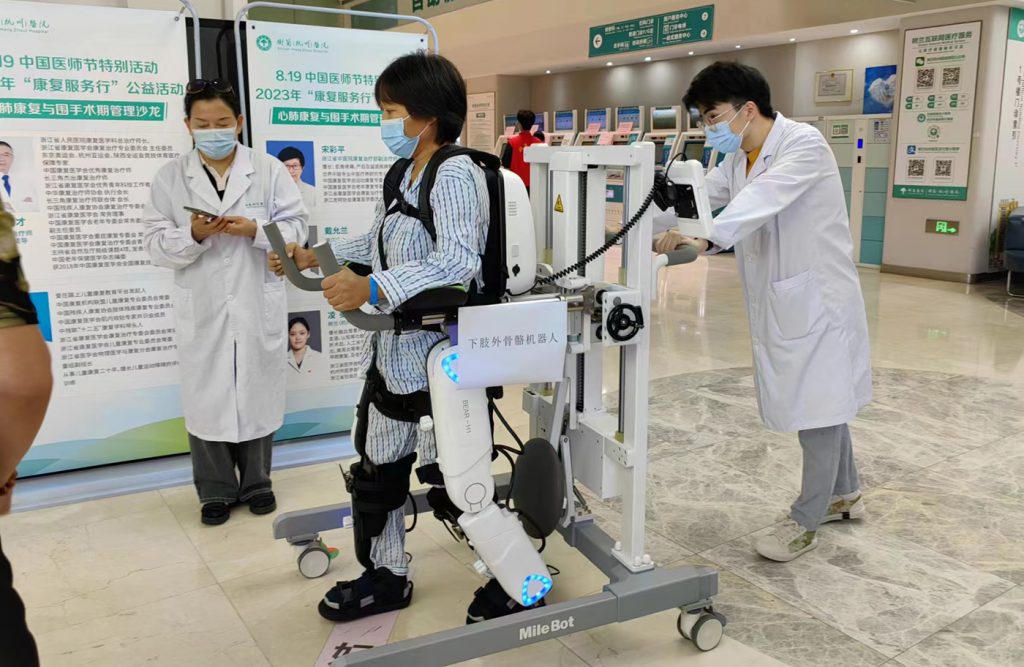 6、步行訓(xùn)練:在平坦的地面上行走或使用跑步機(jī)進(jìn)行步態(tài)訓(xùn)練。初期可以使用輔助器具如助行器,在安全的情況下逐漸減少使用。當(dāng)患者的下肢功能恢復(fù)到一定程度后,可以進(jìn)行步行訓(xùn)練。當(dāng)下,各大醫(yī)院康復(fù)科室逐步引入康復(fù)機(jī)器人進(jìn)行步行訓(xùn)練,能夠根據(jù)患者實(shí)際情況提供個(gè)性化康復(fù)訓(xùn)練方案。