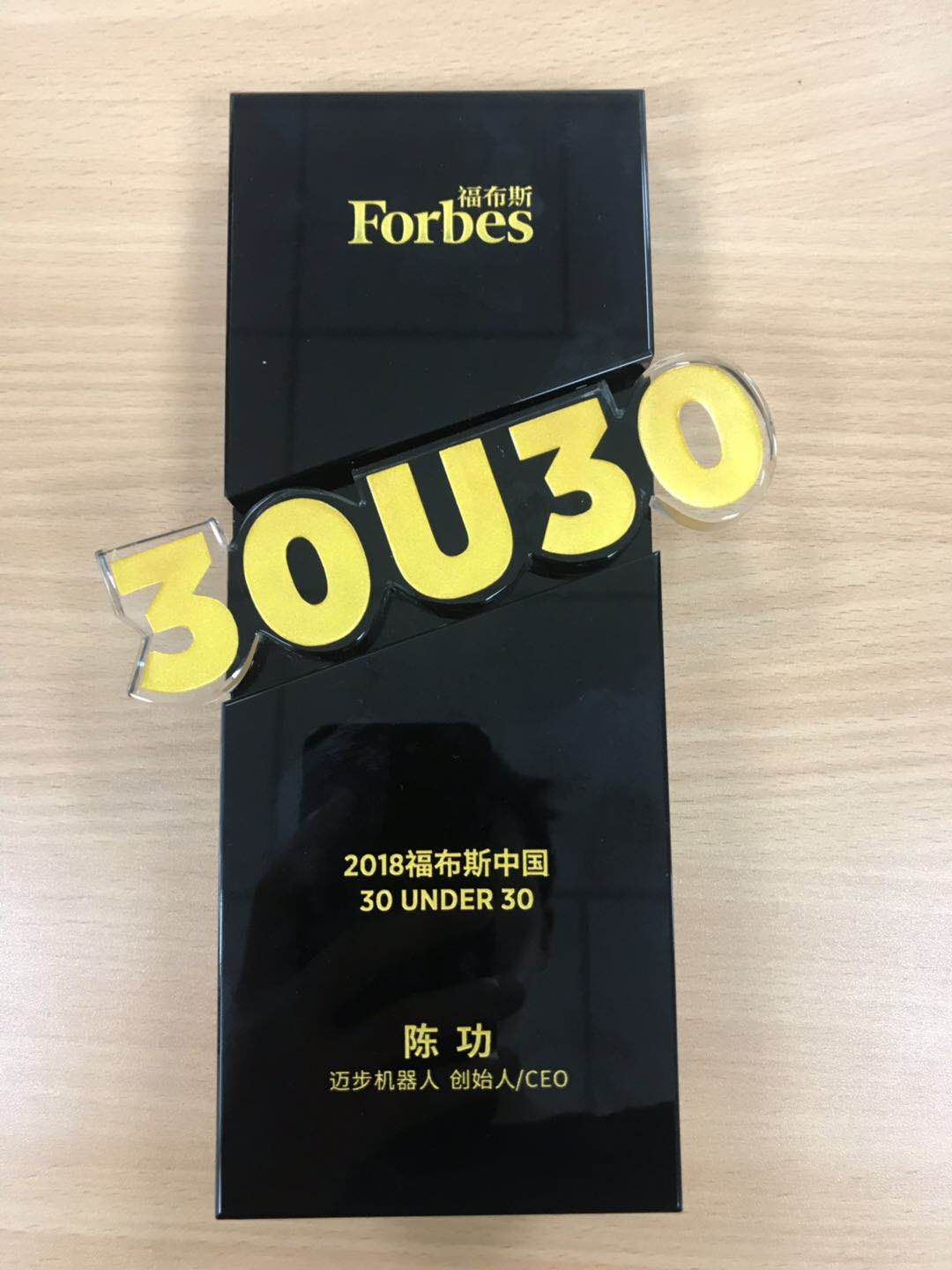 2018年8月2日,邁步機器人陳功博士入選2018福布斯中國30位30歲以下精英榜醫療健康領域榜單。